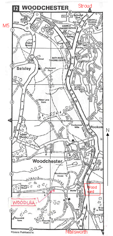 South Woodchester is between Stroud and Nailsworth, south Gloucestershire. Leave Stroud on the A46 Bath Road towards Nailsworth. After approximately two and a half miles turn right into Station Road opposite the timber yard. After 150 yds turn left at the T junction: signposted to South Woodchester. Drive on up the lane past the Ram Inn on your left. Shortly after turn right up into Bospin Lane. Drive up the lane, keep left at Lagger Lane and on for approximately 80 yds to locate Woodlea on the left. It is a cream rendered house with a brown personnel gate set in a Cotswold stone wall. Drive past and turn immediately left into a small lane where you can park on the left by the garage. The map looks quite good if you print it out! Back |